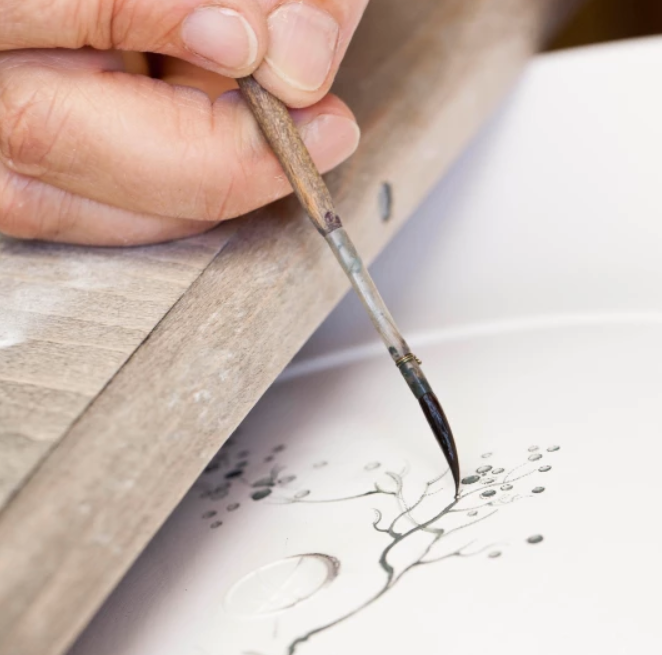 The precious metal is also applied by hand with the utmost precision and gently polished, creating a subtle reflection on the surface. In this interplay of floral painting and metallic accentuation, the vase reveals a harmonious balance between traditional design and contemporary expression.